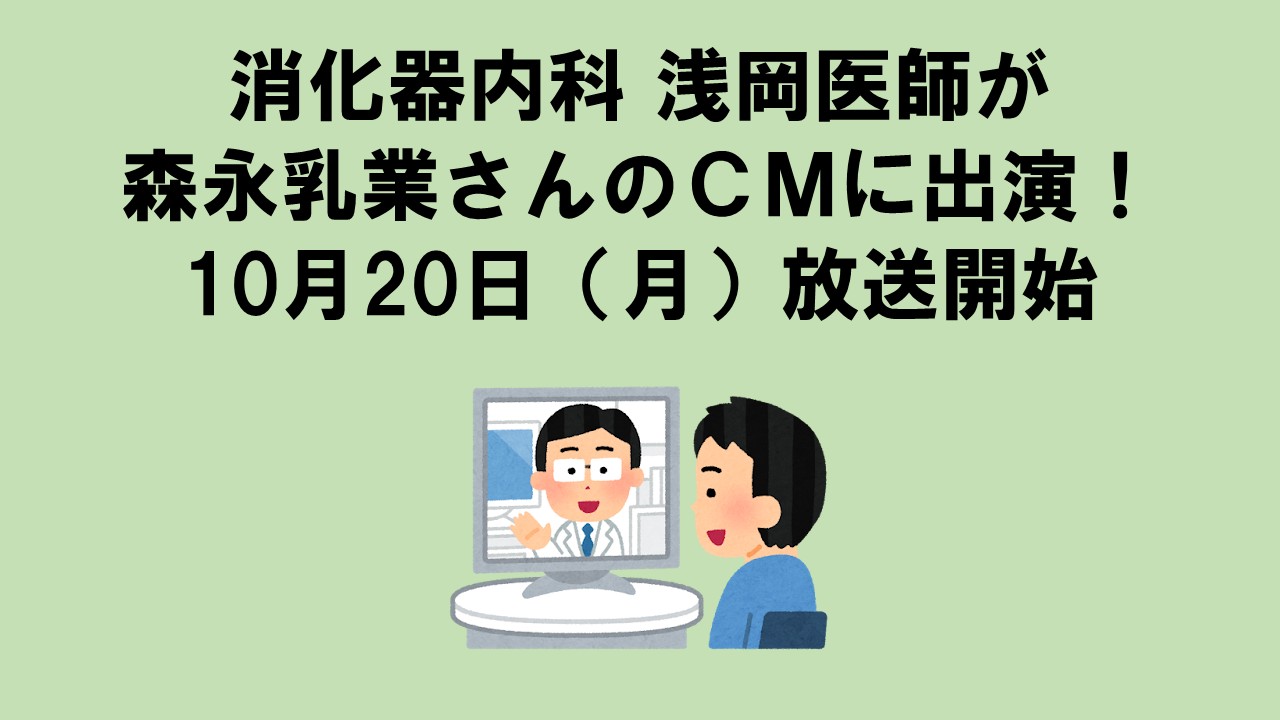 10月20日(月) 21:00~ 消化器内科 浅岡教授が森永乳業のTVコマーシャルに出演します!